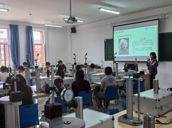 大学物理A实验课堂: 安全规范执行到位,教师讲解原理清晰、操作演示精准,学生分组实验井然有序,数据采集与处理严谨科学,体现了良好的科学素养和实践能力。