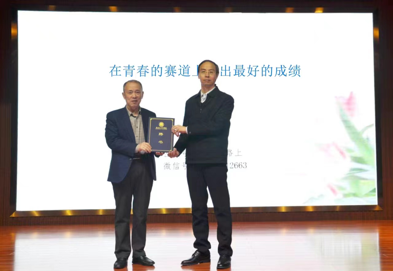 4月14日,我校特邀“时代楷模”、全国道德模范、全国“最美奋斗者”、全国高校辅导员年度人物、大连海事大学马克思主义学院博士生导师曲建武教授作题为《在青春的赛道上跑出最好成绩》的专题报告。党委书记徐德荣出席报告会并为曲建武教授颁发客座教授聘书,党委副书记、副校长张幸刚主持报告会。