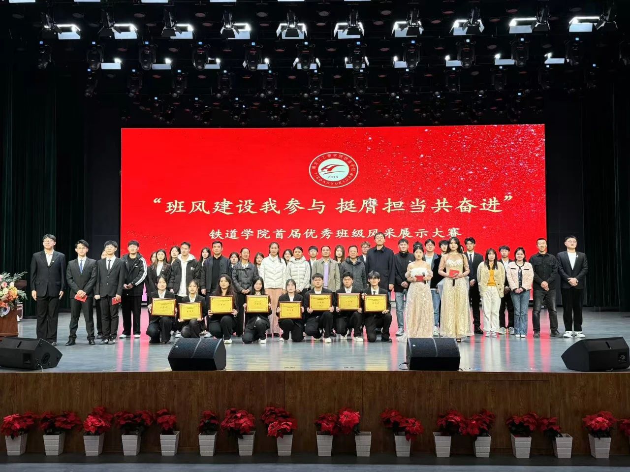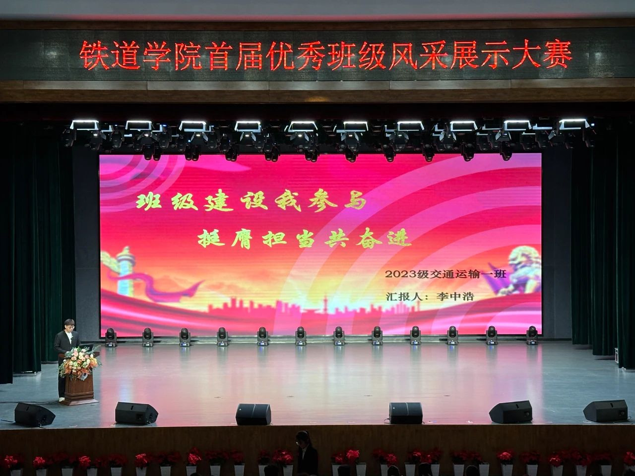大赛由铁道学院党总支书记慎海歌,副院长孙佳鑫、樊景义、张航及各教研室主任担任评委。进入决赛的8个班级依次上台,围绕集体精神、班级学风、未来展望等方面进行班风建设展示。