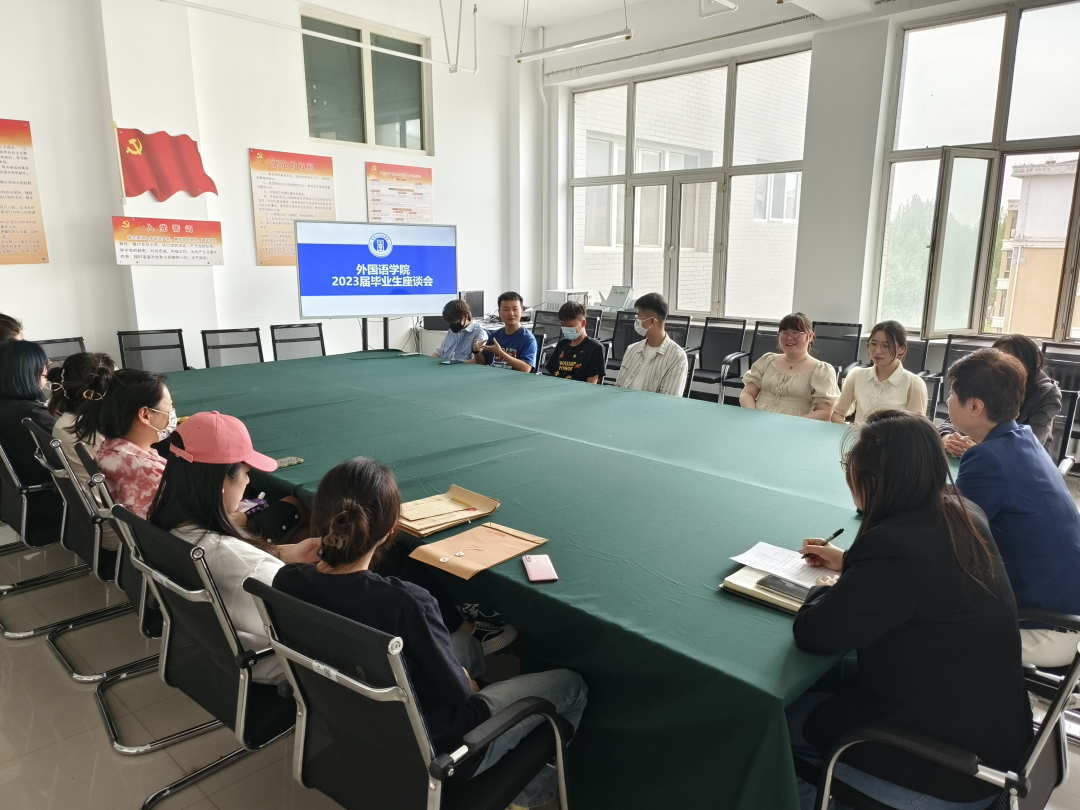 为帮助毕业生树立正确的世界观、人生观、价值观和科学的职业观,更好地了解毕业生在校期间的收获与建议,外国语学院于5月31日在第二教学楼455会议室召开2023届毕业生座谈会。学院党总支书记张杰、毕业生辅导员梅一琦及2023届毕业生代表参加会议,党总支书记张杰主持会议。