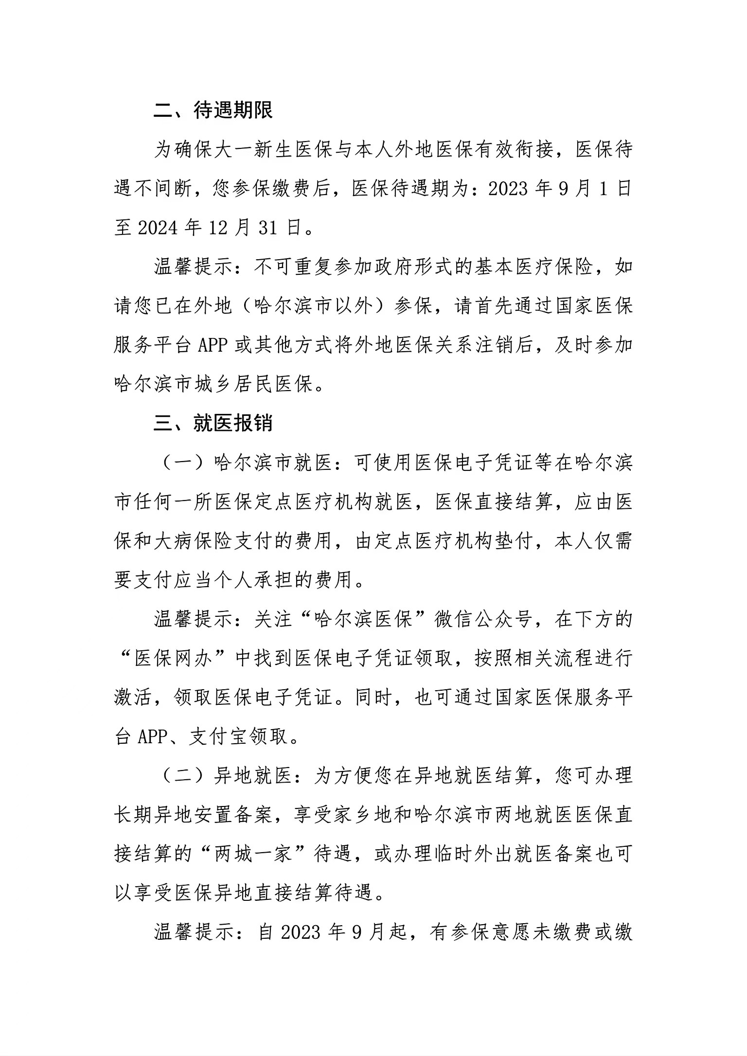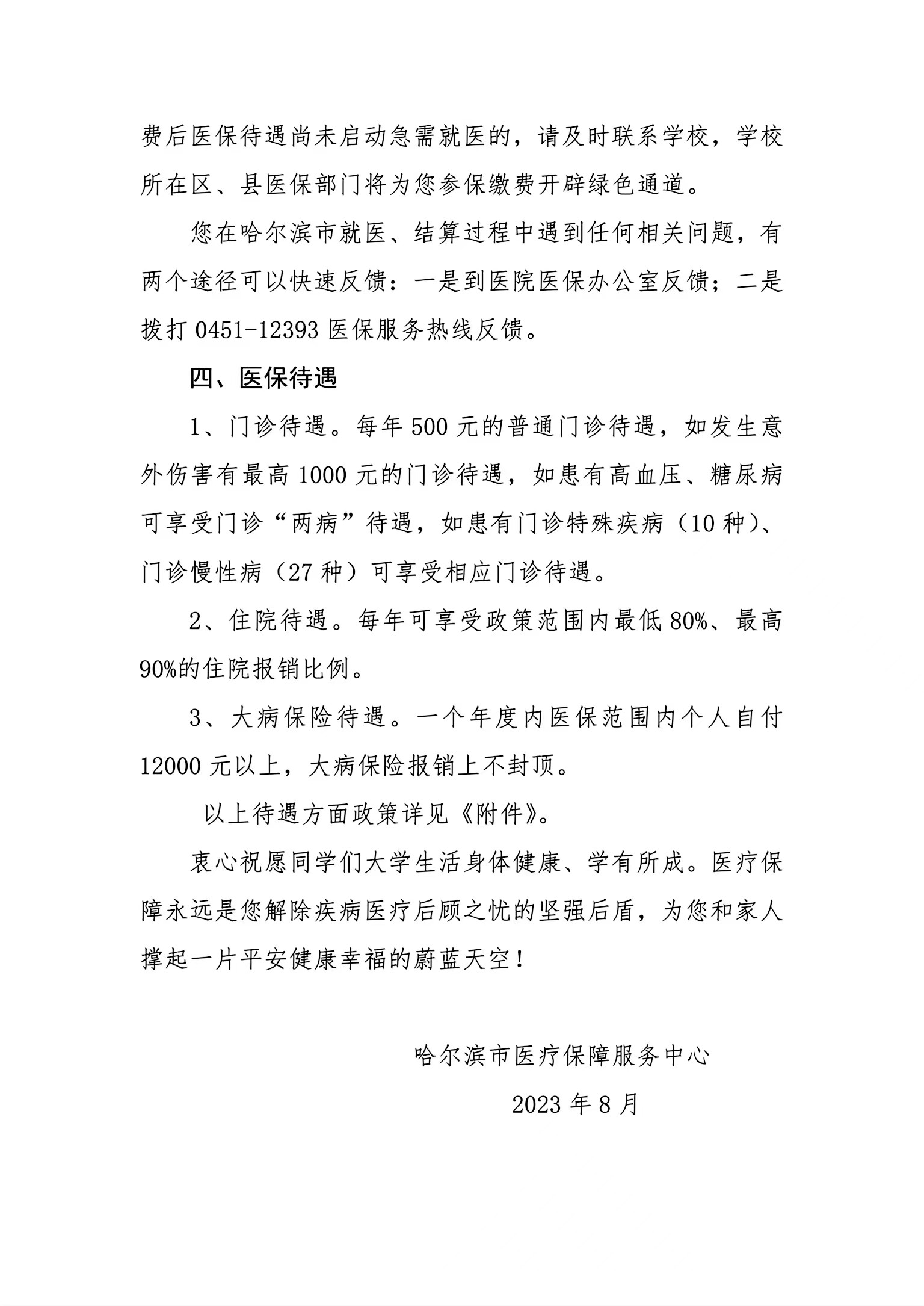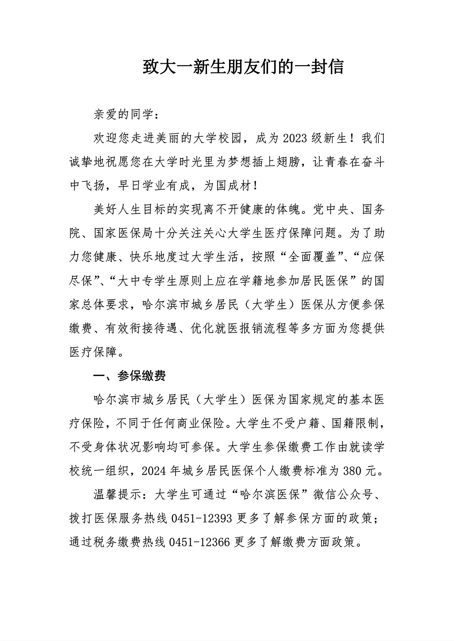 哈尔滨市医疗保障服务中心——致大一新生朋友们的一封信