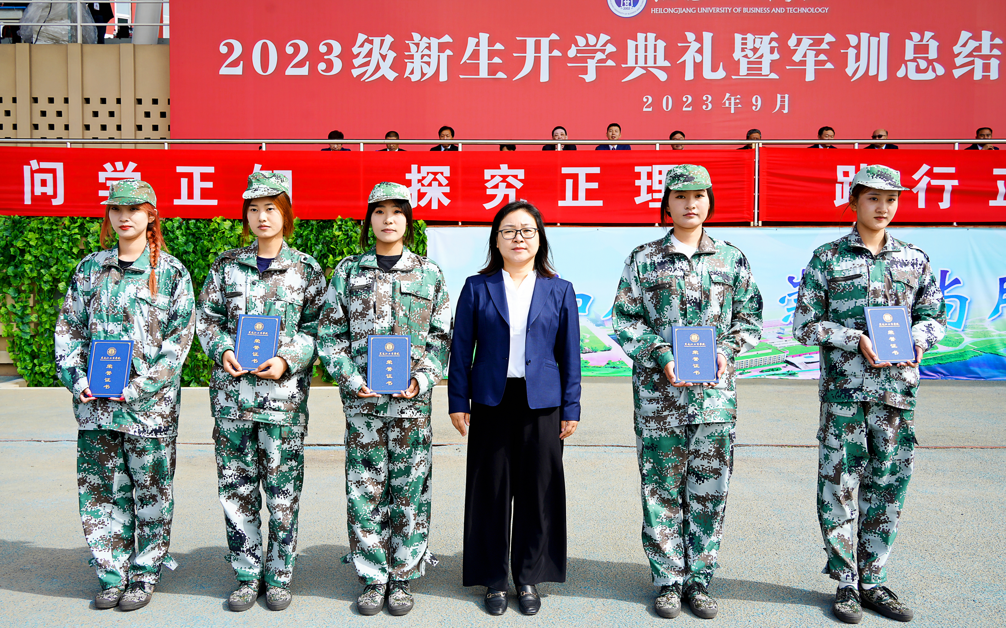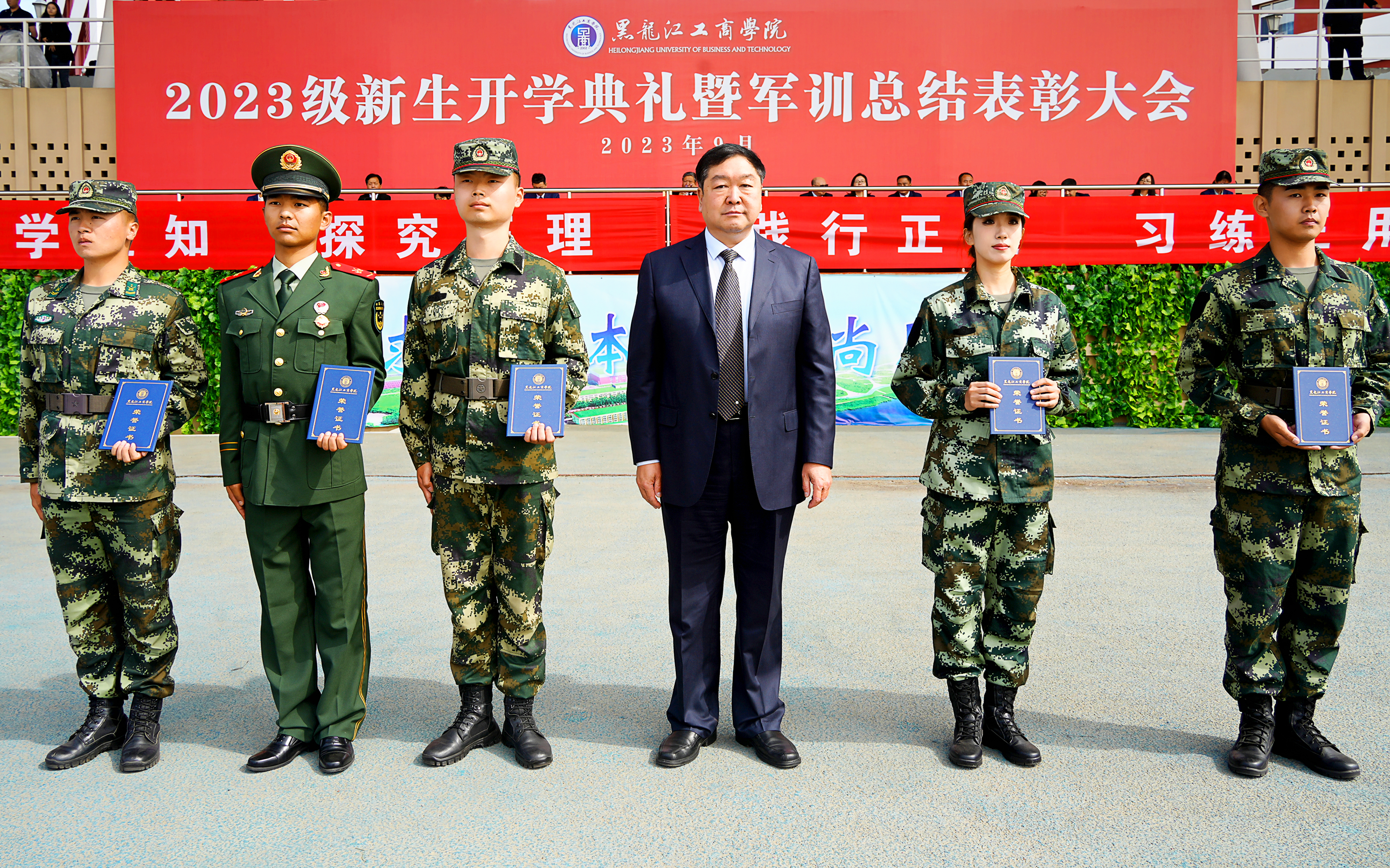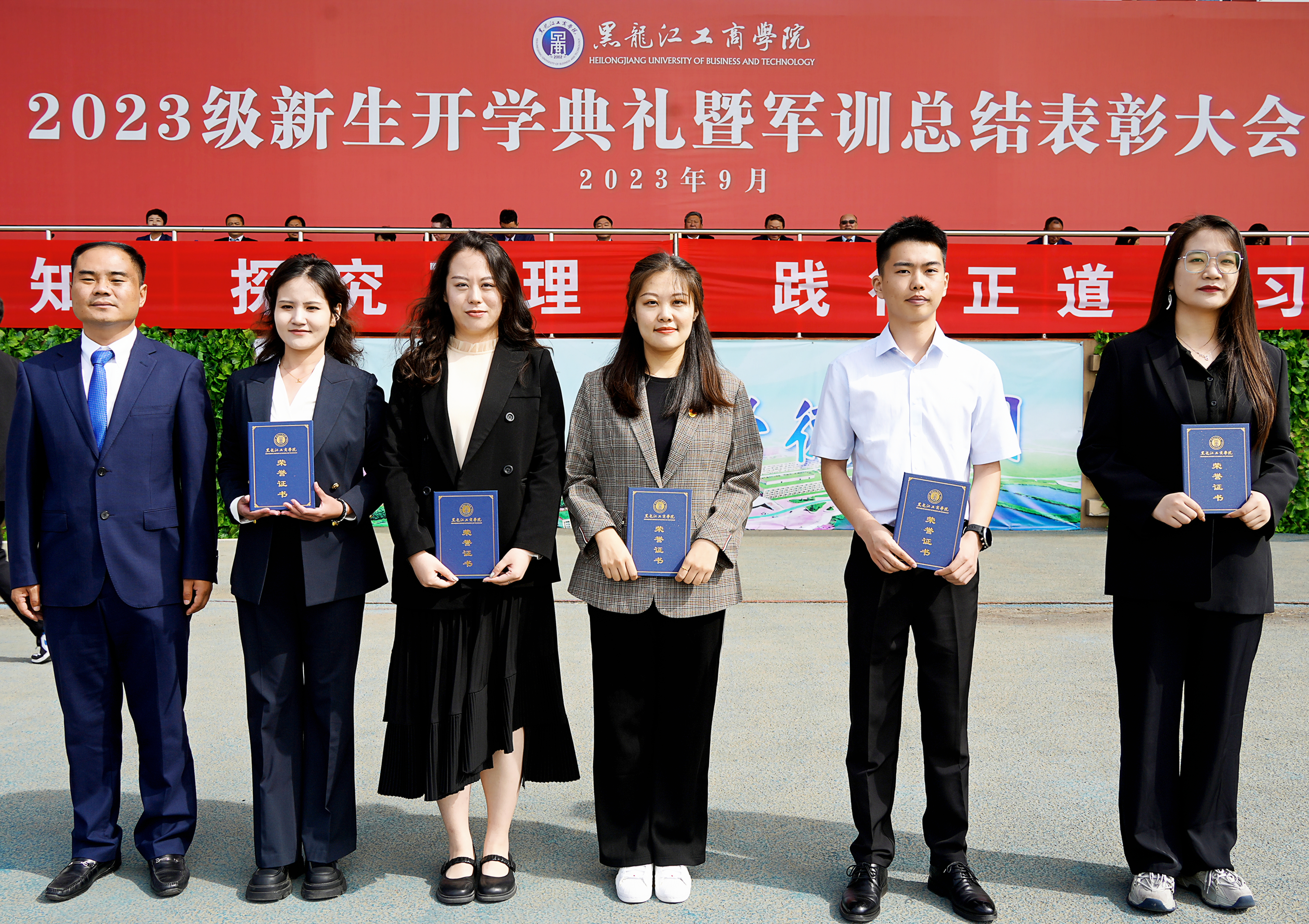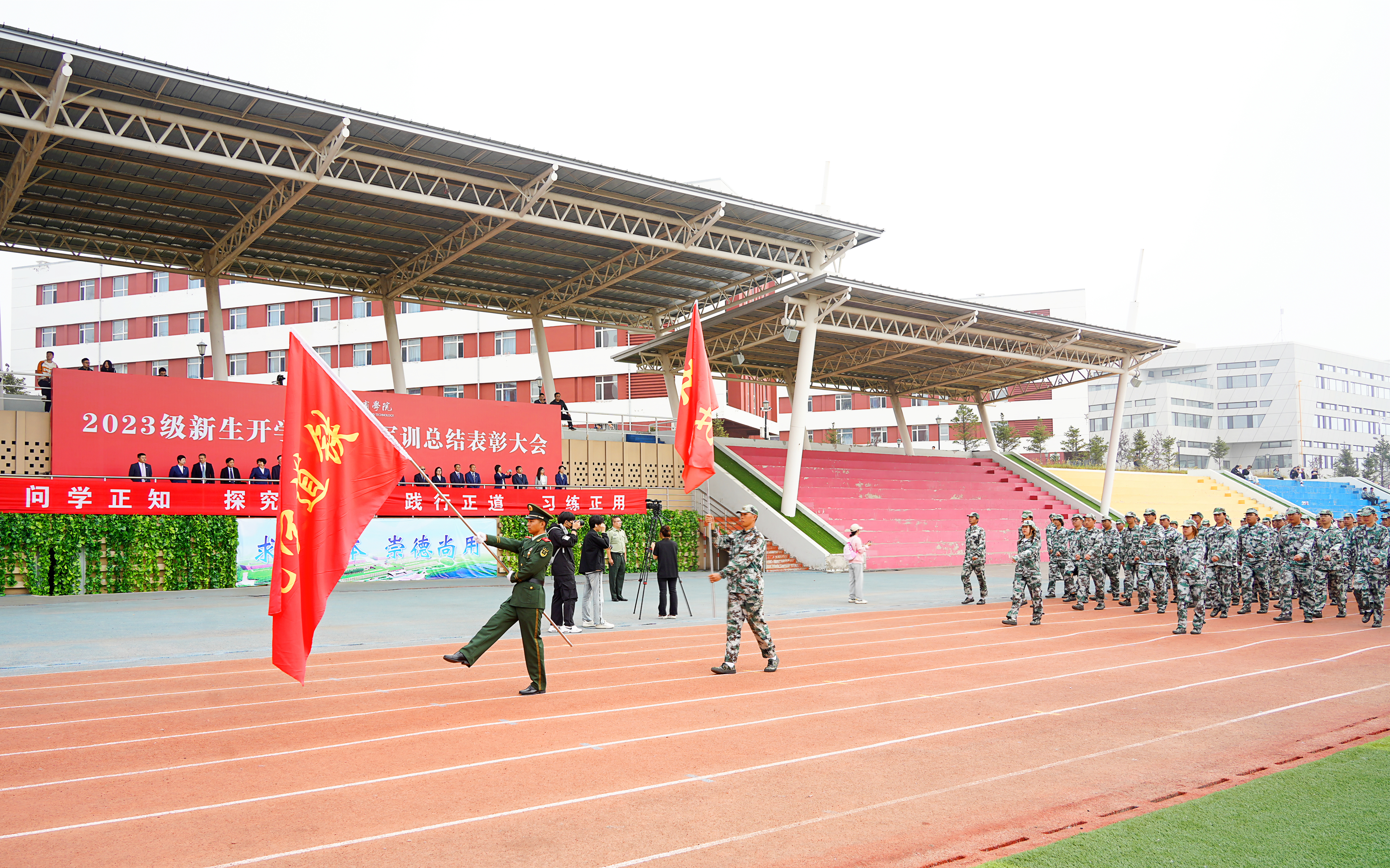 各二级学院院长、党总支书记、军训教官、辅导员,2023级全体新生参加表彰大会。