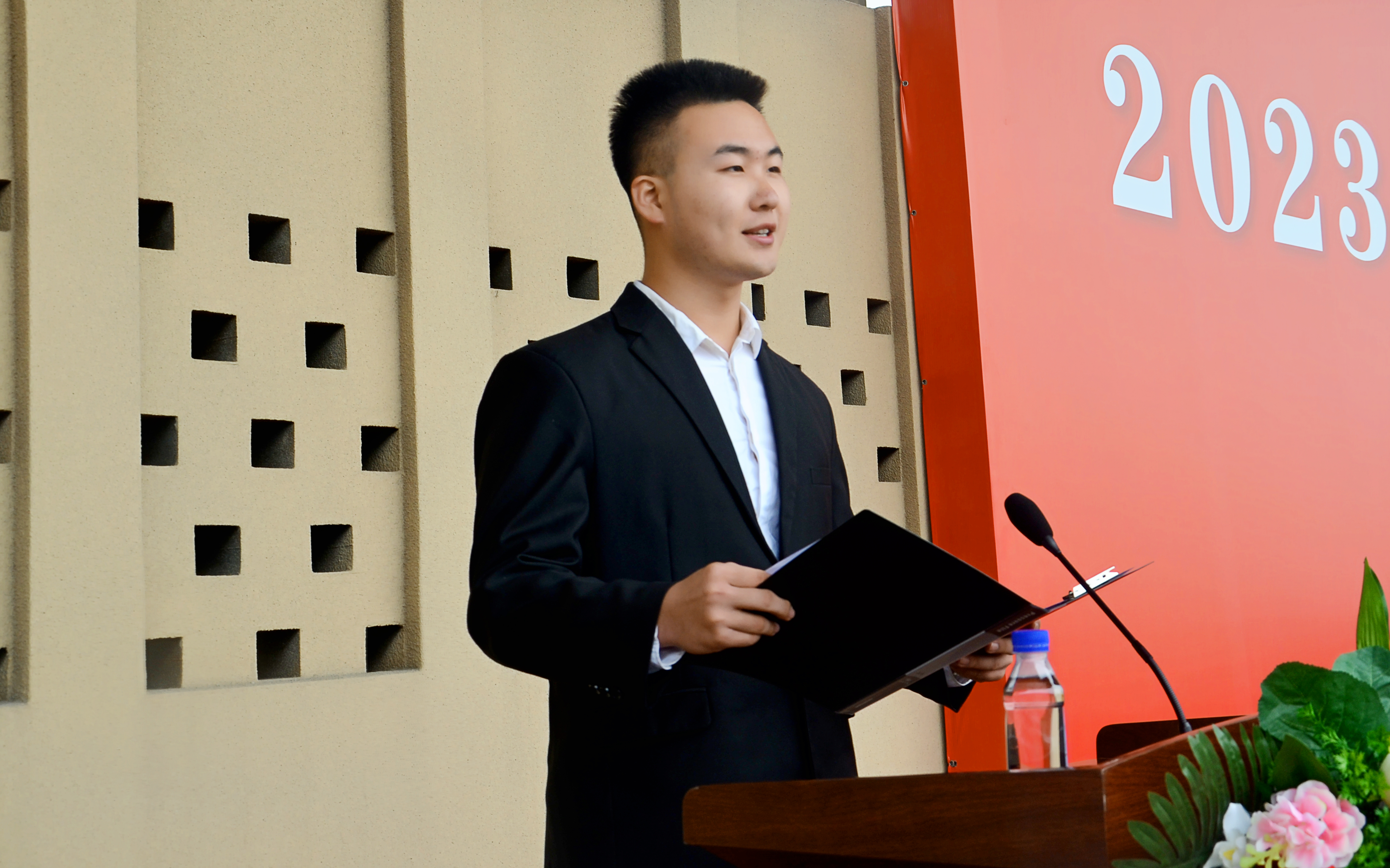 注:新生代表2023级土木工程专业郭佳明同学发言