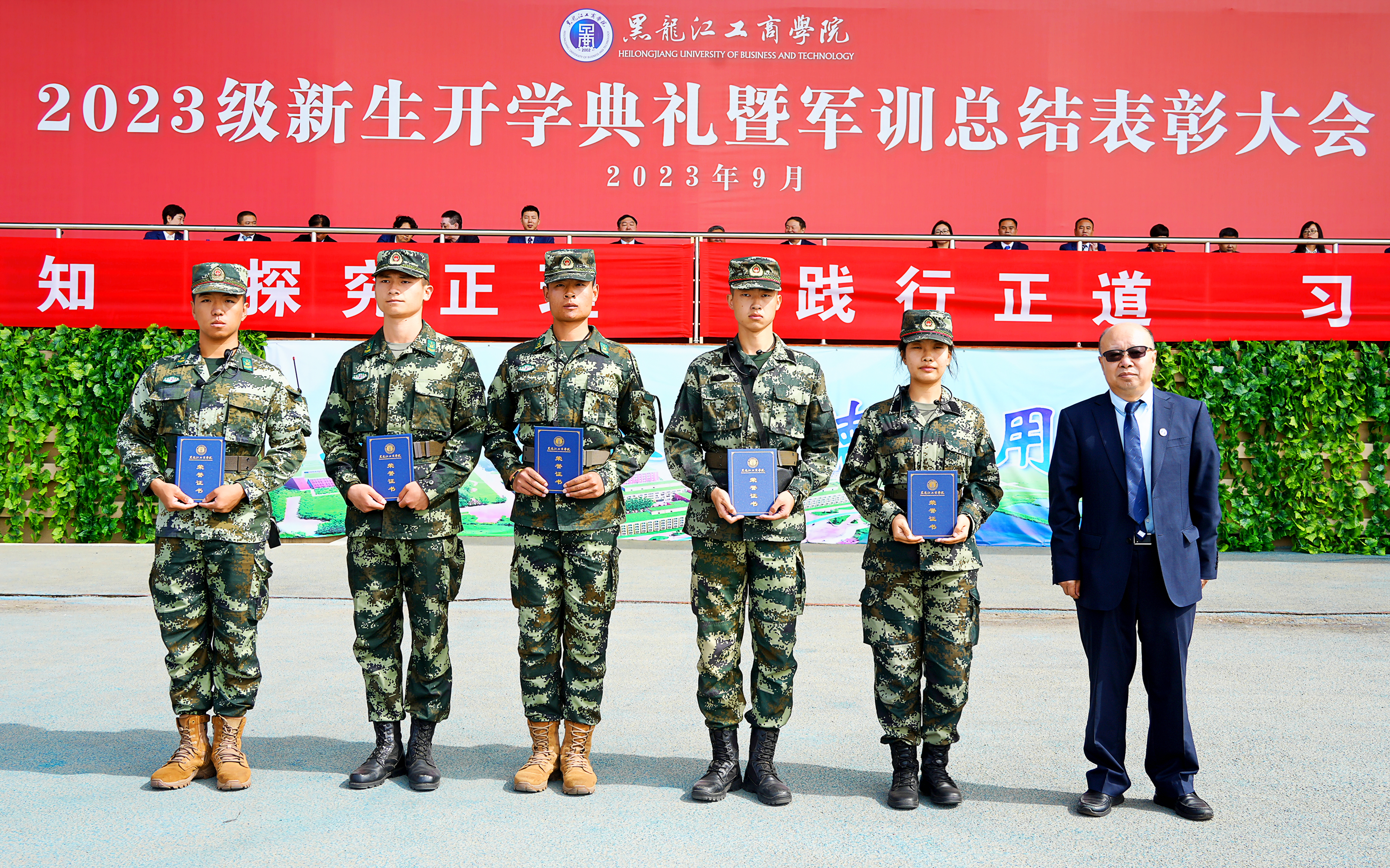 大会先后对军训优秀连队、优秀教官标兵、优秀学员、优秀辅导员等进行了表彰。