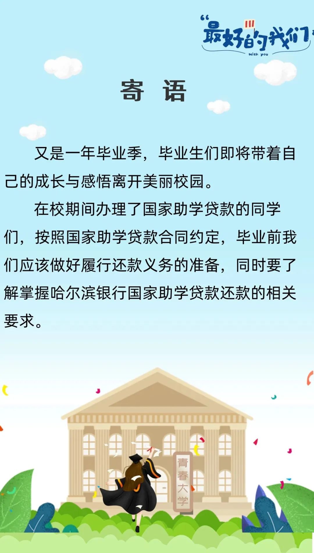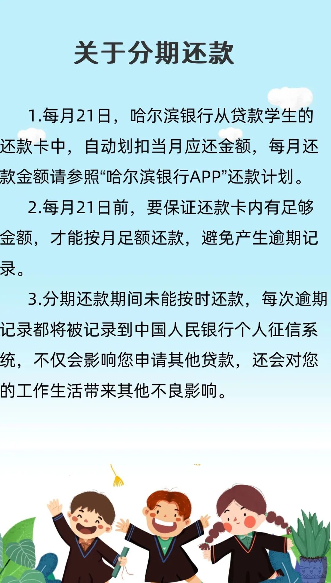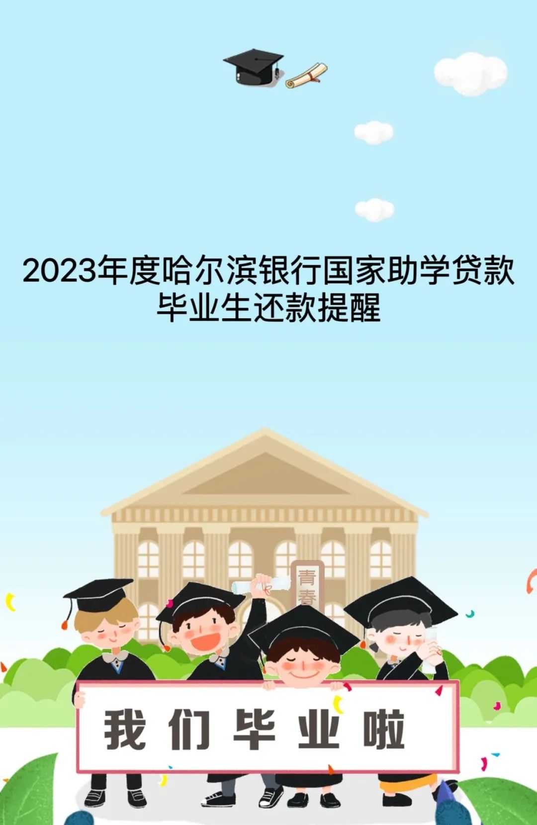 2023年度哈尔滨银行国家助学贷款毕业生还款提醒