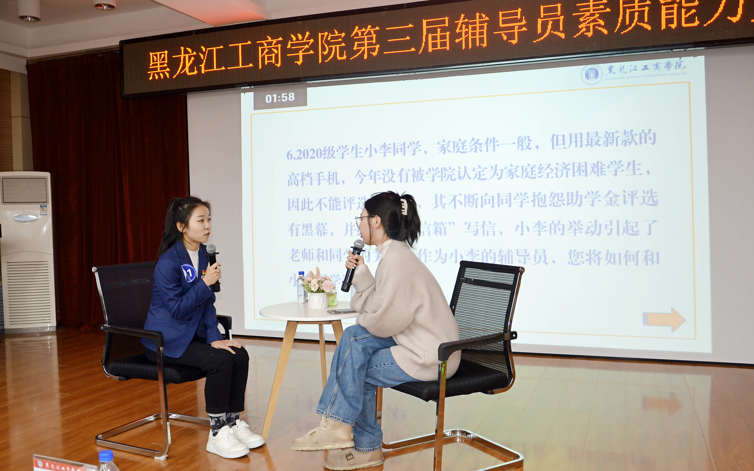 本次大赛突出以赛促学、强化以赛代练,旨在全面提升辅导员的理论水平、专业素养及做好大学生思想政治工作的针对性、亲和力,在业务切磋、思维碰撞中将辅导员队伍打造成为一张闪亮的育人名片。在案例分析环节,选手们围绕工作案例,两人一组互相提问,深入剖析问题本质,寻求解决思路和针对性举措;在谈心谈话环节,以“情景再现”的形式,耐心聆听“百般难题”,辅导员坚持以学生为中心,从容应对、条分缕析、按章办事、循循善诱,展示“身正”“情深”的品格素质和解决实际问题的能力。