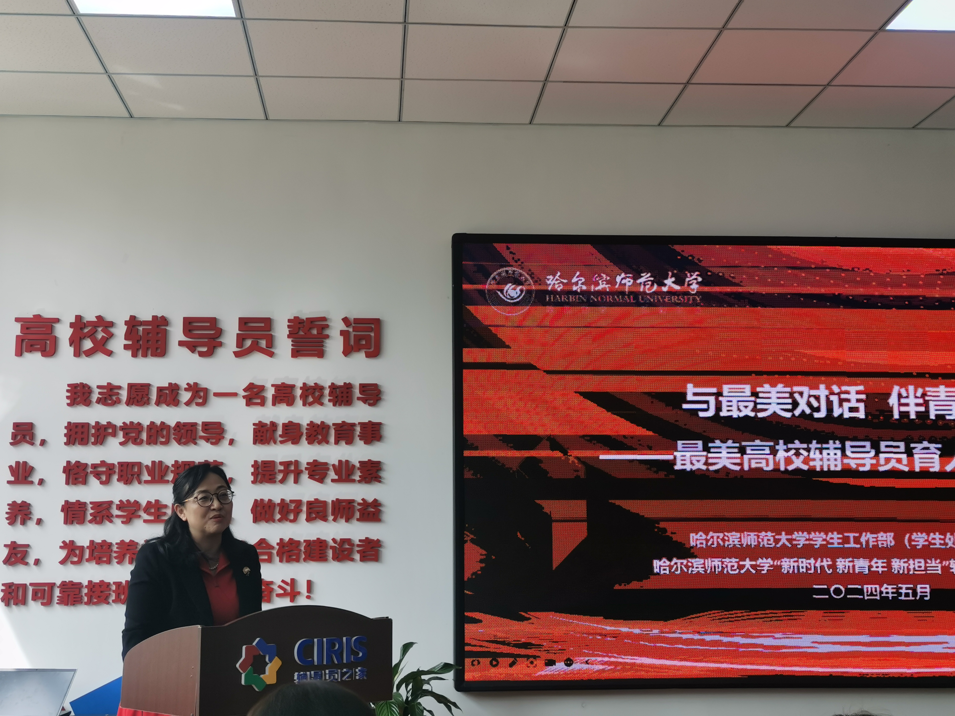 会议开始,与会代表观看哈尔滨师范大学《辅导员之歌》后,哈尔滨师范大学学生工作部(学生处、武装部)部(处)长王彦庆致辞。