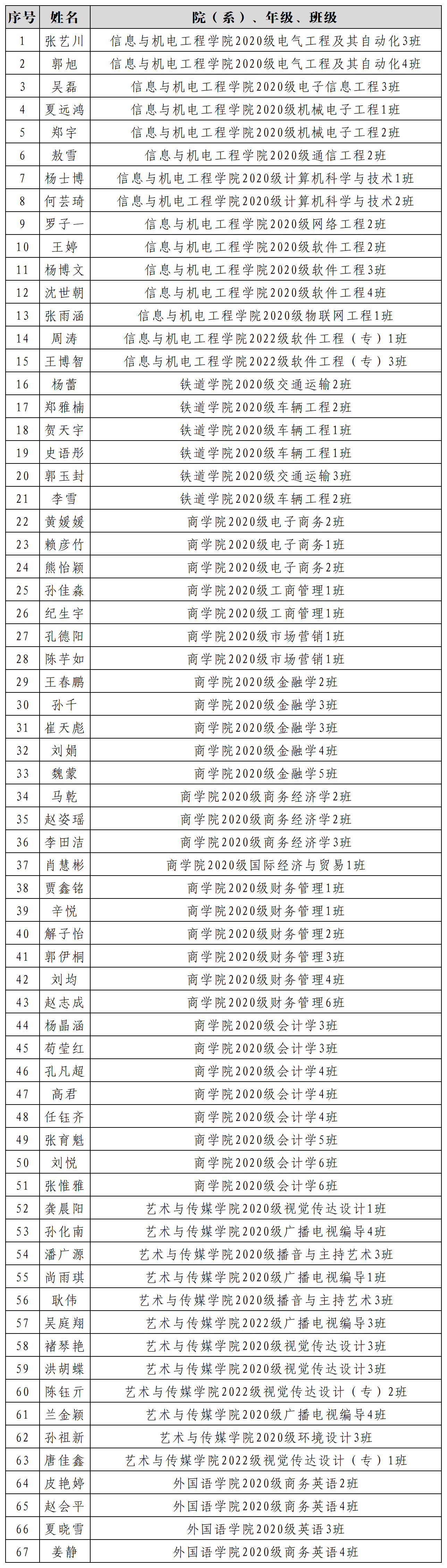 为深入贯彻中共中央、国务院《关于加强和改进新形势下高校思想政治工作的意见》和教育部《普通高等学校学生管理规定》(教育部令第41号),全面落实立德树人根本任务,充分发挥先进典型示范引领作用,激励和引导青年学生将个人成长与国家发展、民族复兴、龙江振兴紧密结合起来,争做新时代中国特色社会主义事业的合格建设者和接班人,根据省教育厅相关文件要求,我校于4月23日开展2024年黑龙江省普通高等学校“优秀毕业生”评选表彰活动。为确保评选工作的公平、公正和严肃性,现将各学院拟推选的省级“优秀毕业生”名单予以公示。