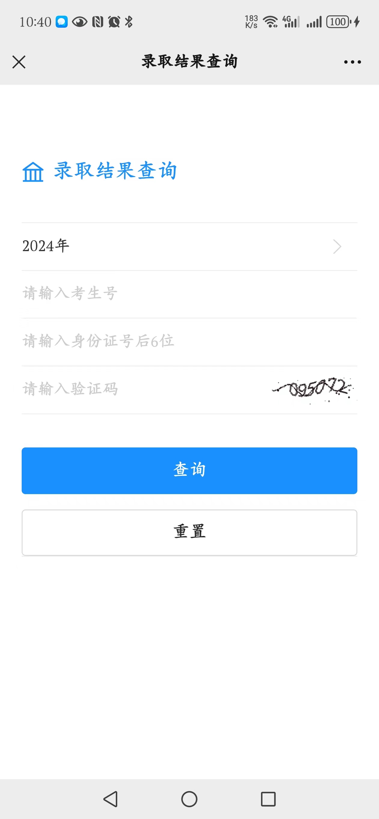 进入到页面后,将会出现录取结果查询网页(见下图)(说明:考生号为14位,组成为"24"(年份)+省份代号(2位)+准考证号(10位)例:辽宁省考生号为24+21+准考证号”。如果您的准考证号为14位,可直接输入到考生号处。如果您的准考证号为10位,请按照上述规则输入到考生号处查询。
