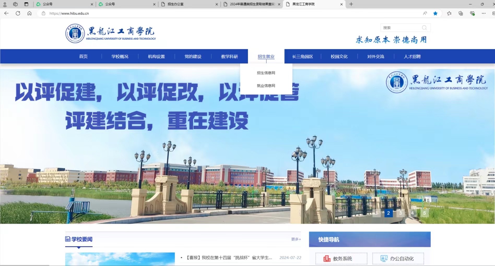 1.学校网站(/)点击“招生就业”栏目下的“招生信息网”(见下图)